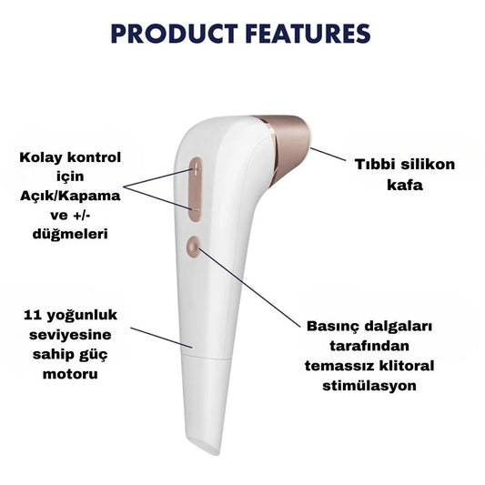 Pleasure Air Teknolojisi (Emiş/Hava Basıncı): Bir Emiş Güçlü Vibratör, klitorise doğrudan ve sert bir baskı uygulamaz. Bunun yerine, cihazın ucundaki yumuşak, vücutla uyumlu silikondan yapılmış ağızlık (nozzle), klitorisin başının (glans) etrafına nazikçe oturarak hava geçirmez bir mühür oluşturur. Cihazın içindeki bir mekanizma (genellikle titreşen bir zar veya piston), bu kapalı alandaki hava basıncını hızla ve ritmik olarak değiştirir. Bu basınç değişiklikleri, klitoris üzerinde nazik ama yoğun emme ve bırakma dalgaları oluşturur.