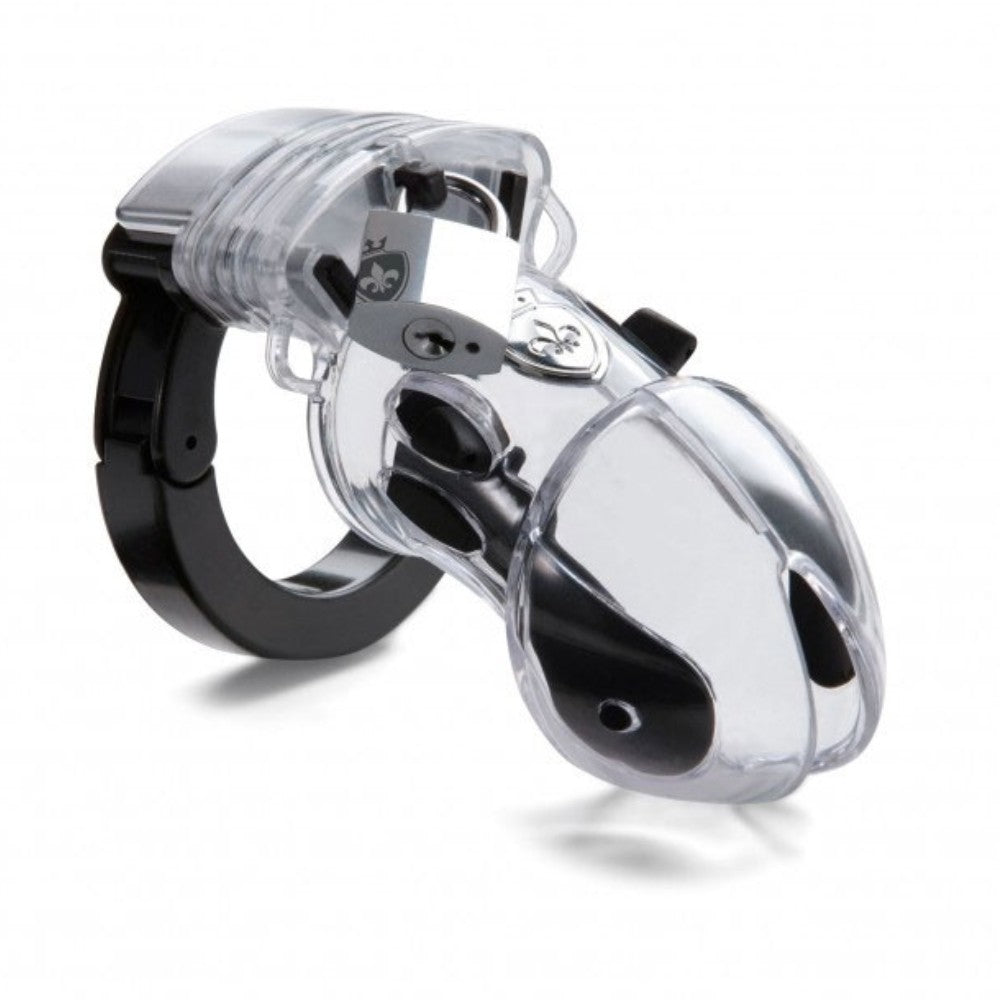 Mystim, the Pubic Enemy 2'den e-stim elektro işlevli ve penis tıkaçlı şeffaf bekaret kafesi. Bu kafes, usta veya metresi anahtarla serbest bırakana kadar penisi sertleşmemesi için kilit altında tutar. Penis tıkacı ve şaftın sol, sağ ve alt kısmındaki üç iletken yüzey kullanılarak mahkuma nabız, karıncalanma ve kasılmalar ile istenilen şekilde tedavi edilebilir. Tam da hak ettiği yoğunlukta!