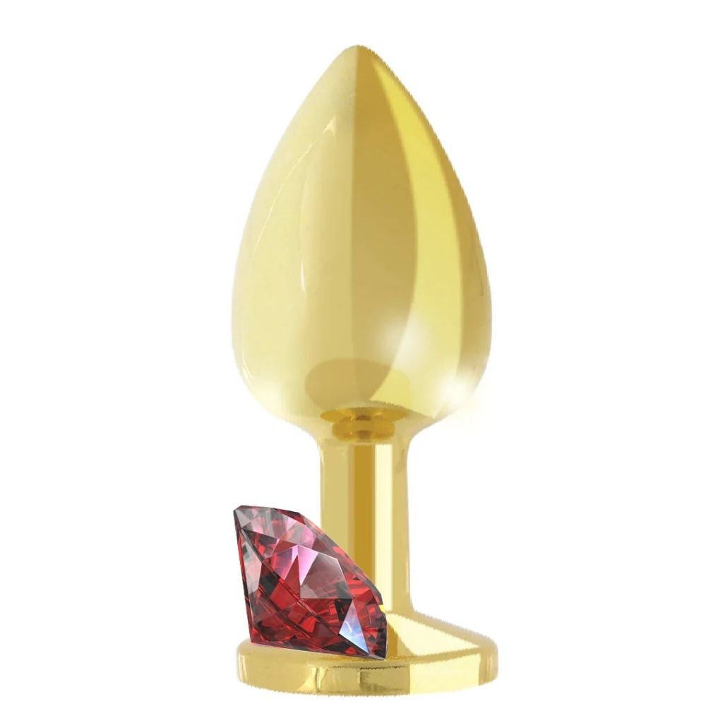 Jewellery Gold Metal Anal Plug Small Red
