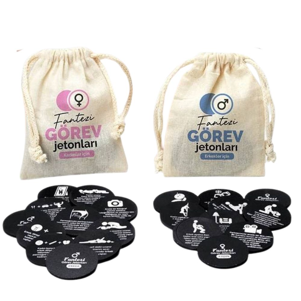 - 2 adet kese içerisinde erkek ve kadın için erotik görev jetonları bulunmaktadır.